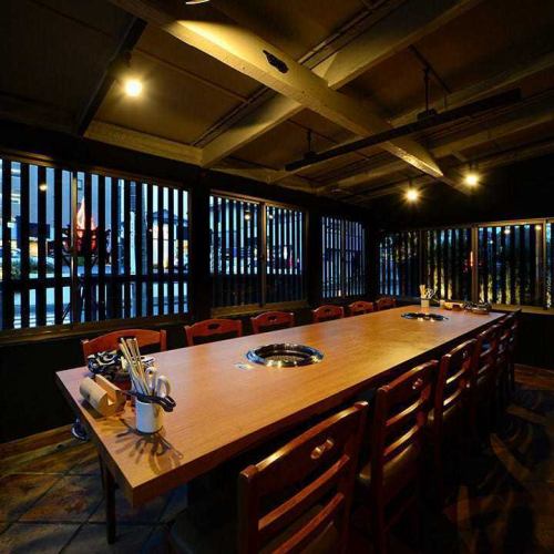 【완전 개인실 10분 이상~14분】점내 안쪽에 있는 테이블석은, 방의 3면에 큰 창유리가 있어, 매우 개방적.최대 14명까지 이용 가능합니다.10명 이상이라면 개인실로서의 이용이 가능.마주 보는 일렬로 사용하실 수 있으므로 일체감있는 연회에 ◎ 어느 쪽의 자리도 배후는 넓어져 있기 때문에 이동도 손쉽게.